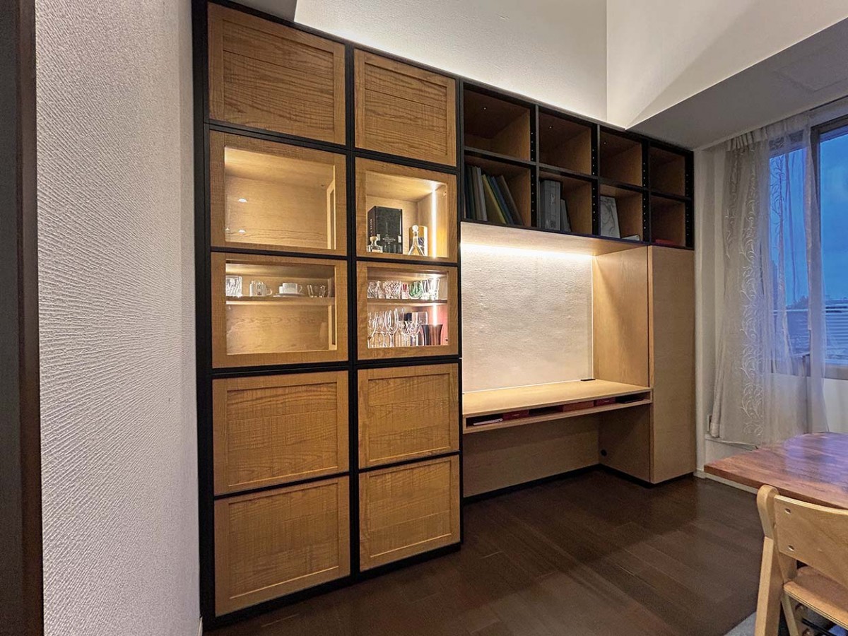 当店では壁面オーダー収納はもちろんのこと、それに伴う工事から一貫して責任を持って施行いたします。その為、スムーズな工事と日程調整、思い通りのオーダー家具が実現いたします。