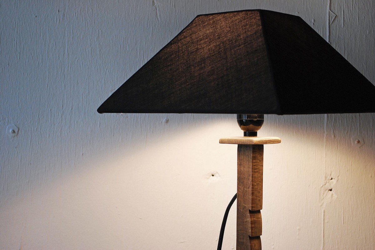たとえば、Dig(ディグ)は、ハンドメイドならではの独特なスタイルのスタンドライトです。木材を削り出して作られた躍動感のある木製シェードが特徴で、ベッドサイドに置いても横に光が漏れず柔らかい灯りが優しく手元を照らします。消灯時でもオブジェのような佇まいでリビングや玄関等でもよく映えます。