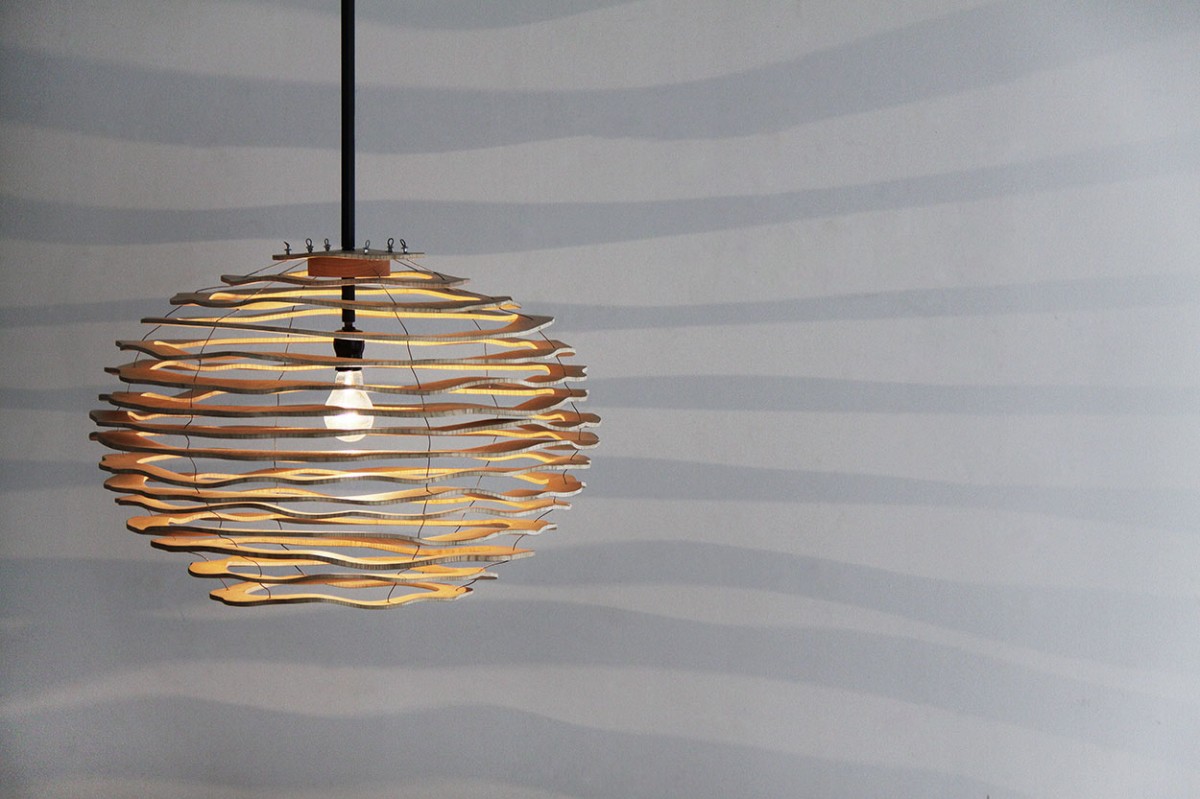木製パーツを重ねてシェードにした「Zebra Pendant Light」は、まるでホテルのロビーに設置されたアートオブジェのような存在感。点灯するとシェードがつくり出す光と影のコントラストが幻想的で、思わずため息がこぼれるほどの美しさ。木の温もりを活かしたデザインなので、ナチュラルインテリアや北欧テイストに自然に溶け込むのはもちろん、モダンな空間にあえて合わせるのも粋です。