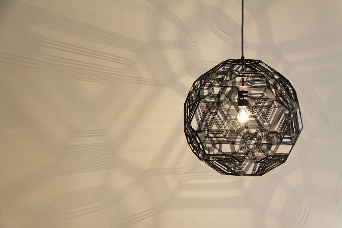 RAMが取り扱うワイヤーアート照明の代名詞ともいえる「Satellite(サテライト)」。幾何学的なワイヤーが織りなすアートシェードが、ライトを点けると壁や天井に幻想的な影を映し出します。サイズは3種類あるので、広めのリビングでも手狭なダイニングでも、お部屋に合わせて選べるのがうれしいところ。