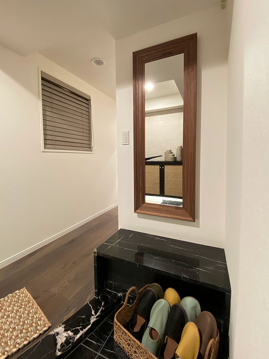 下駄箱の取っ手とカラー違いで住宅全体の統一感をはかります。