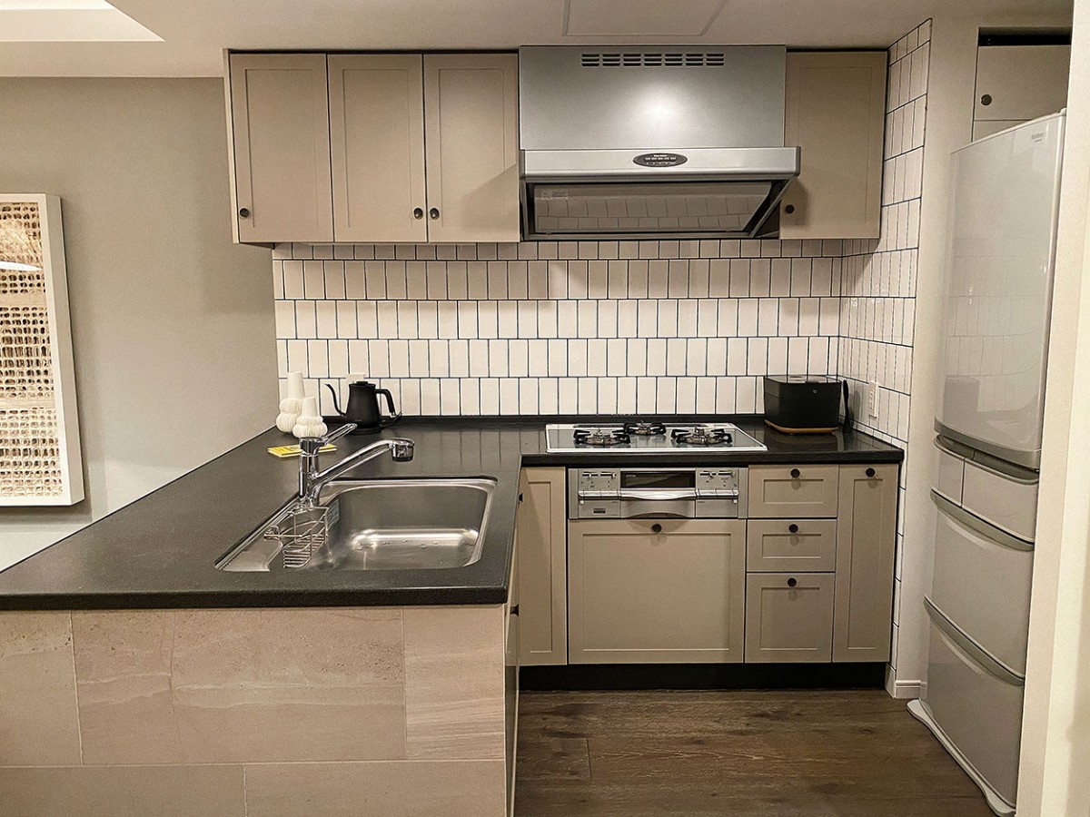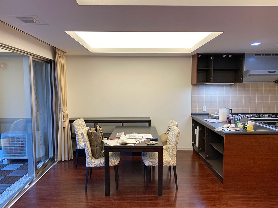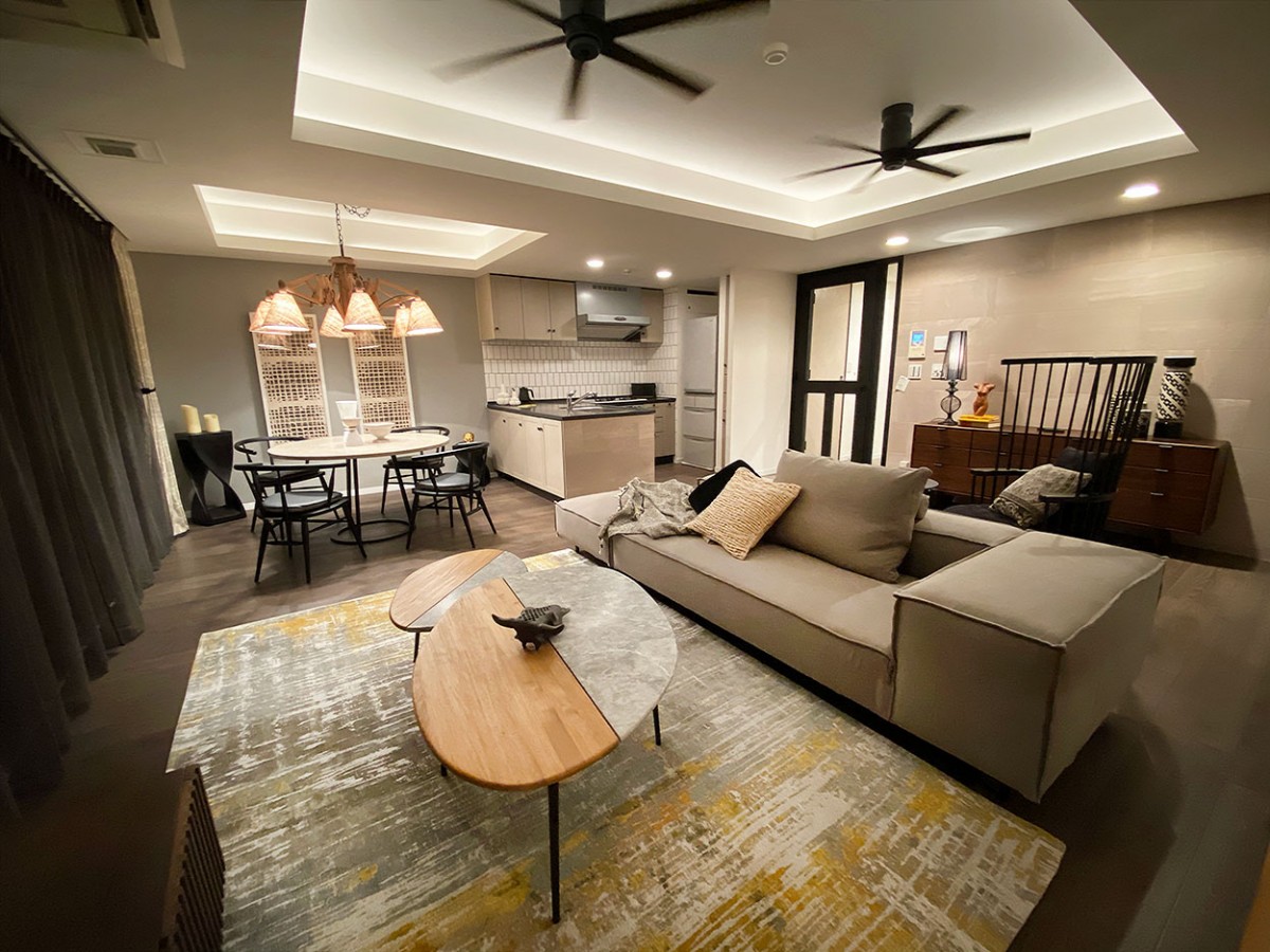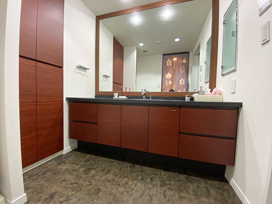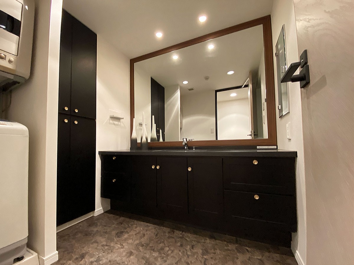 全体のトーンを統一してウォールナットがアクセントとなったシックな設えに。