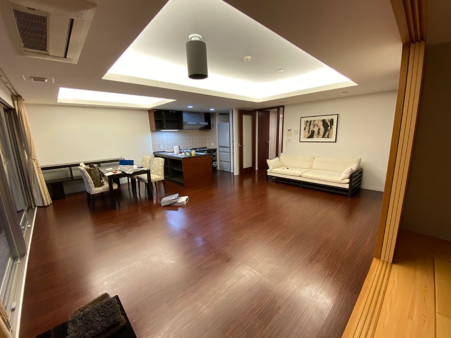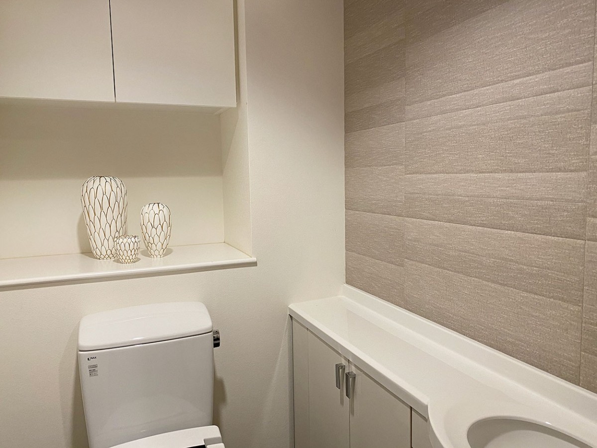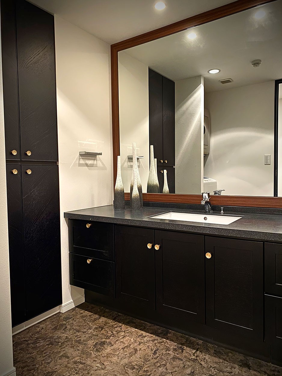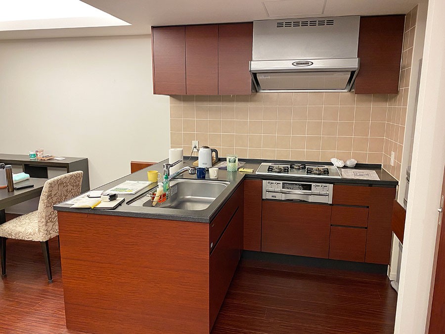全体のトーンを統一してウォールナットがアクセントとなったシックな設えに。