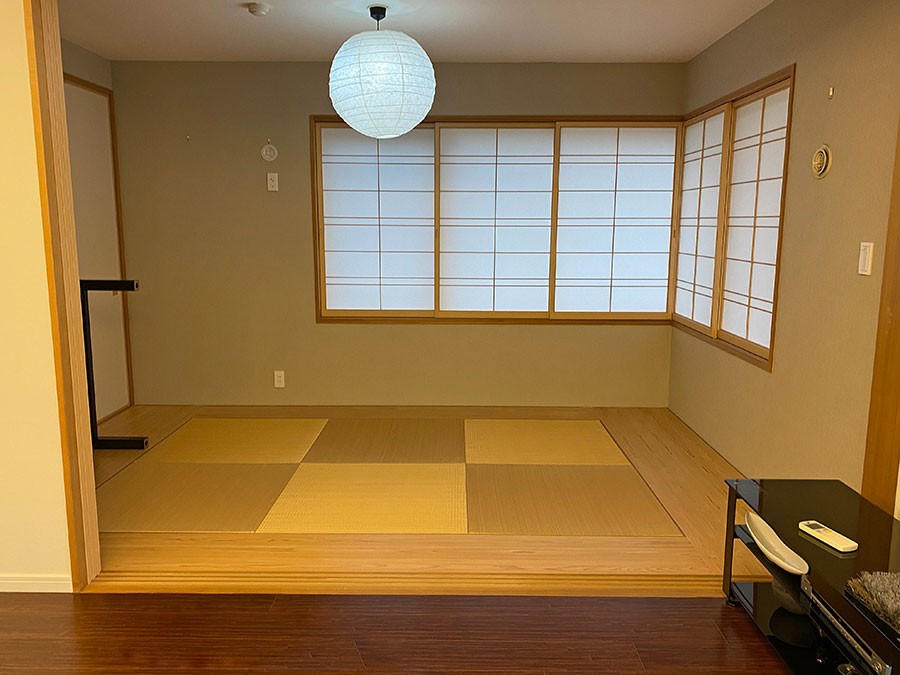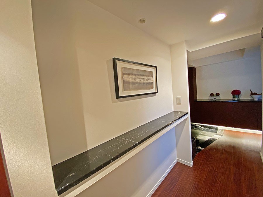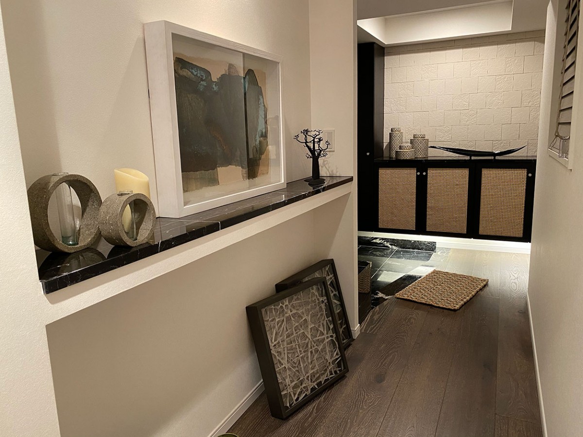 立体的に施工した額縁デザイン。壁から浮いたように施工して圧迫感をさらに軽減。