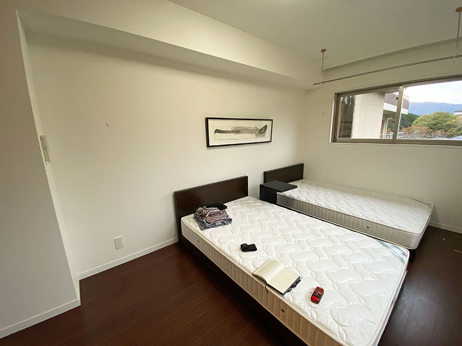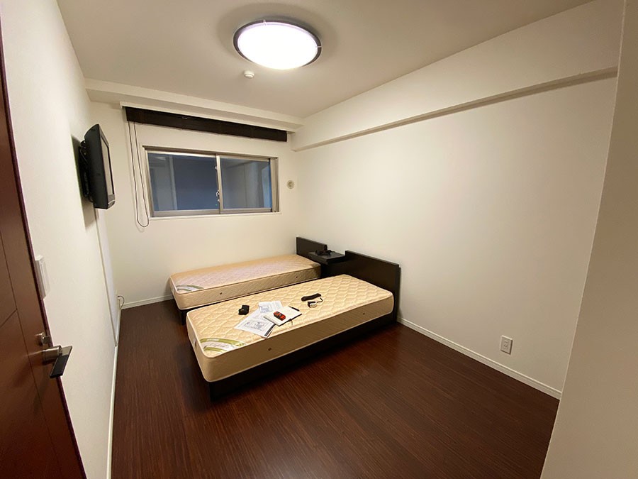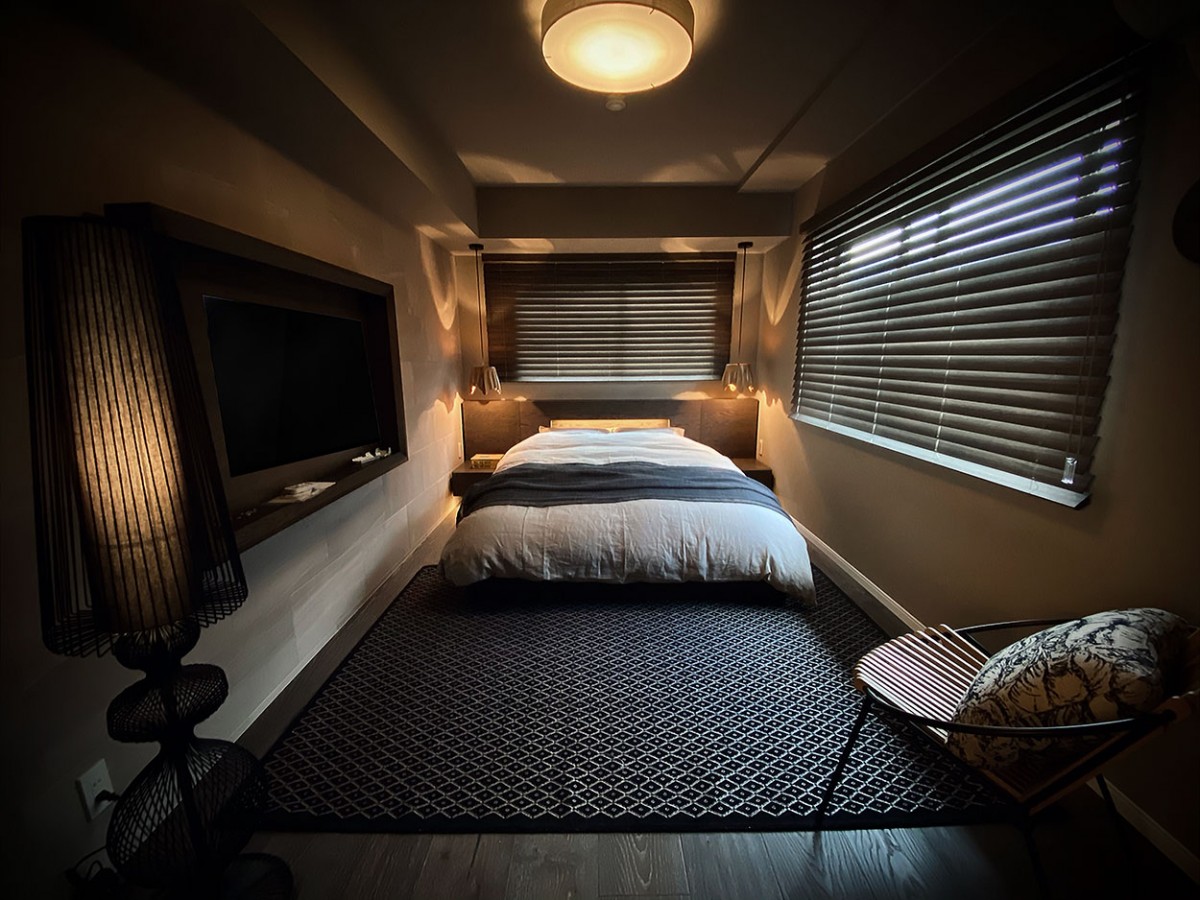 そこまでスペースの取れないベッドルームに最適な壁面オーダーテレビボード。