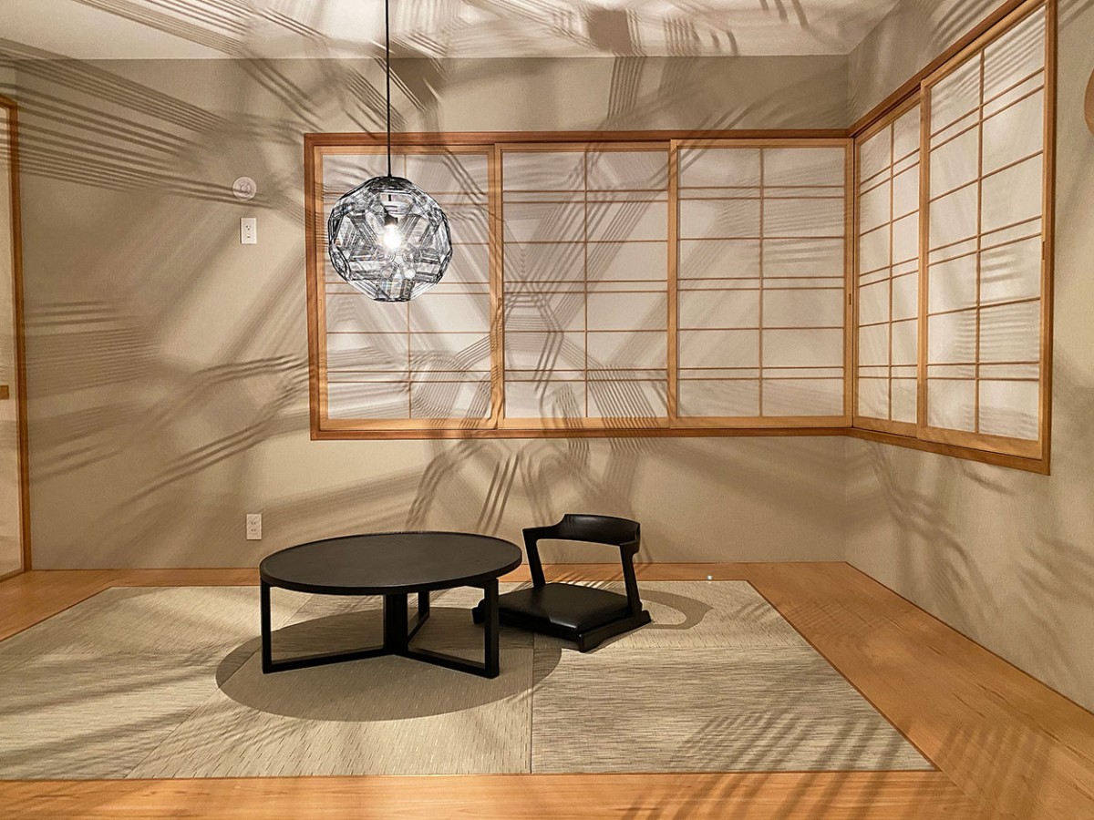 ゲストルーム入り口の建具デザイン。黒枠が効いております。