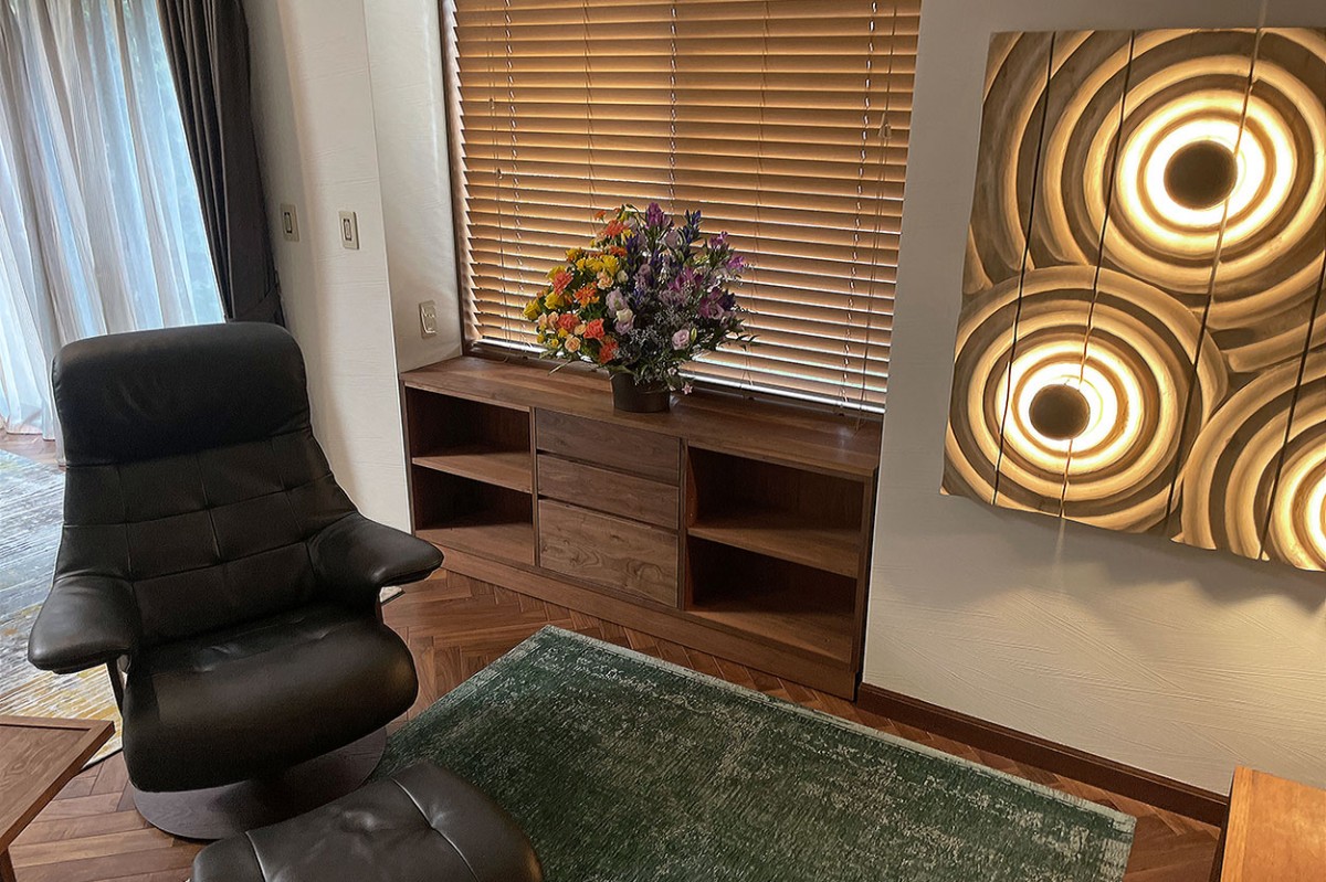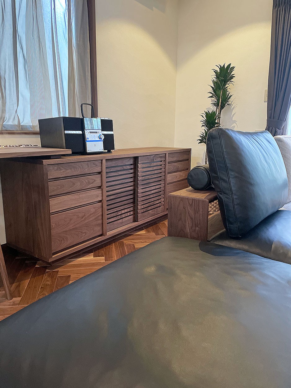 お部屋の中央に配置された KIWAMI SOFA オルタナの抜け感をうまく活用して、ユニットならではのレイアウト変更も楽しめそう。