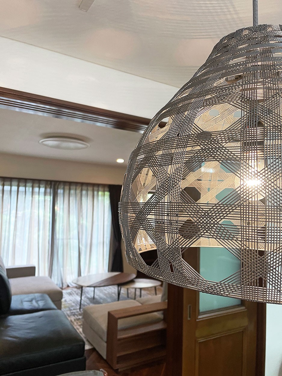 無垢材の重厚さも活かしながら、異素材を使い軽やかに演出。