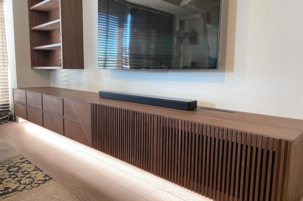 こだわりとお気に入りが詰まった壁面オーダーテレビボード。