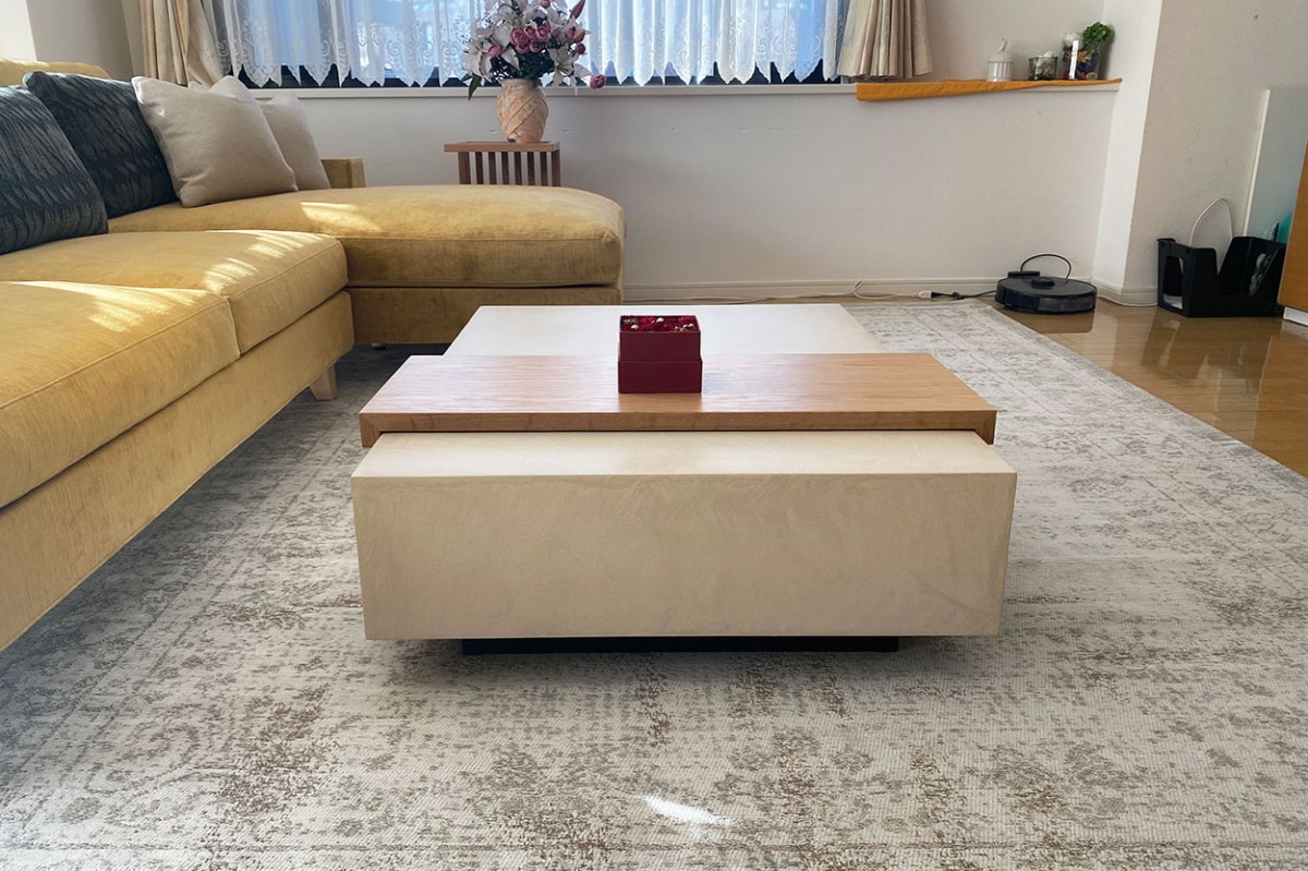 モールテックスとオーク材を合わせた世界に一つだけのセンターテーブル。