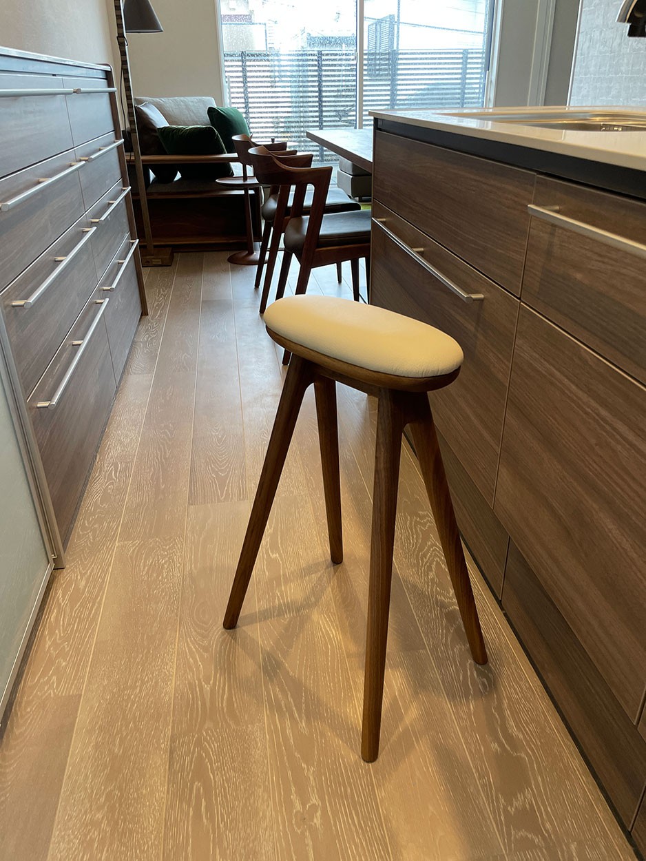 キッチンでの時間もお料理中にちょこっと座れるコンパクトで柔らかいフォルムのスツールを。