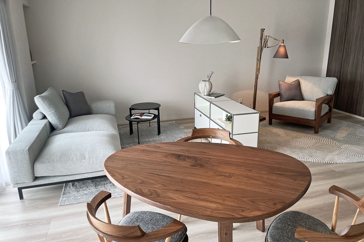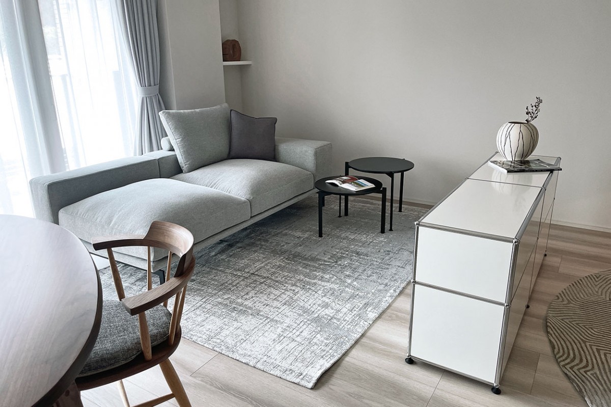 ニュアンスカラーでウォールナットやUSMのホワイトの引き立て役に。