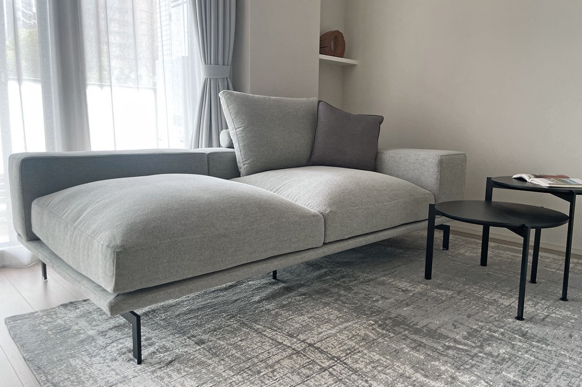 USMハラーで間仕切りられた対面の空間には極ソファ『Rey』を。