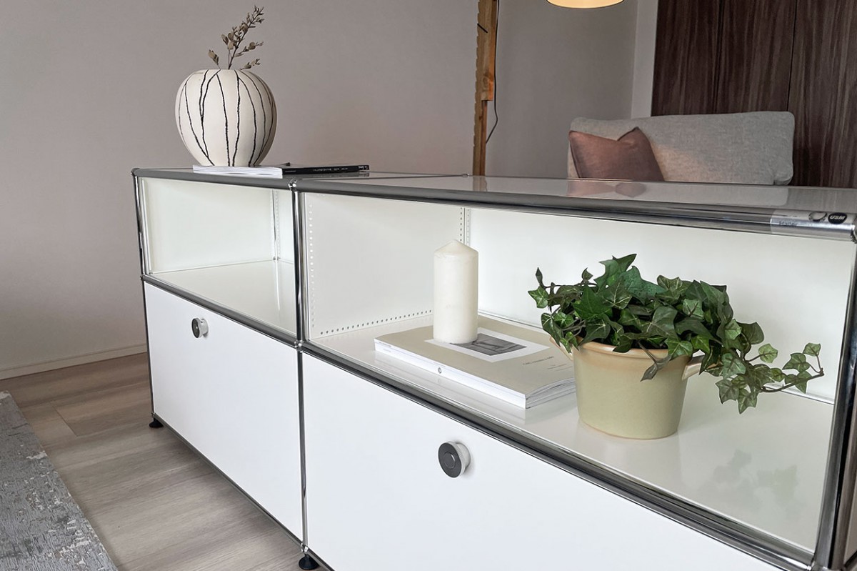 TVボード兼、間仕切りとなる収納にはUSMハラーをお選び頂きました。