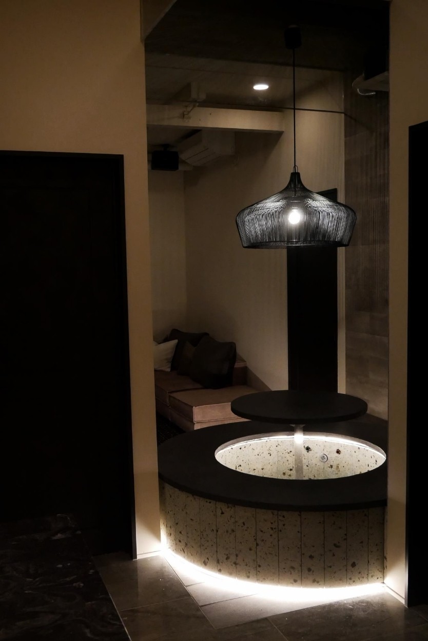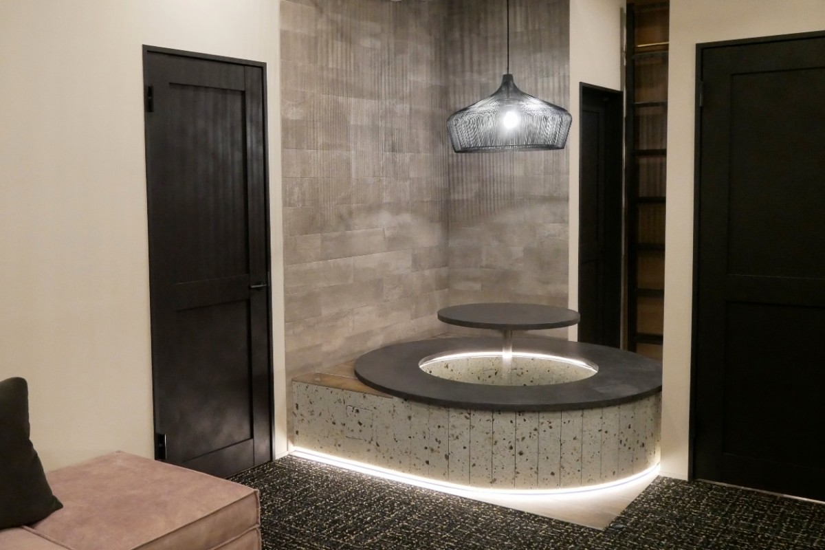 ダイニングスペースとソファラウンジの間に作られたのは足湯。