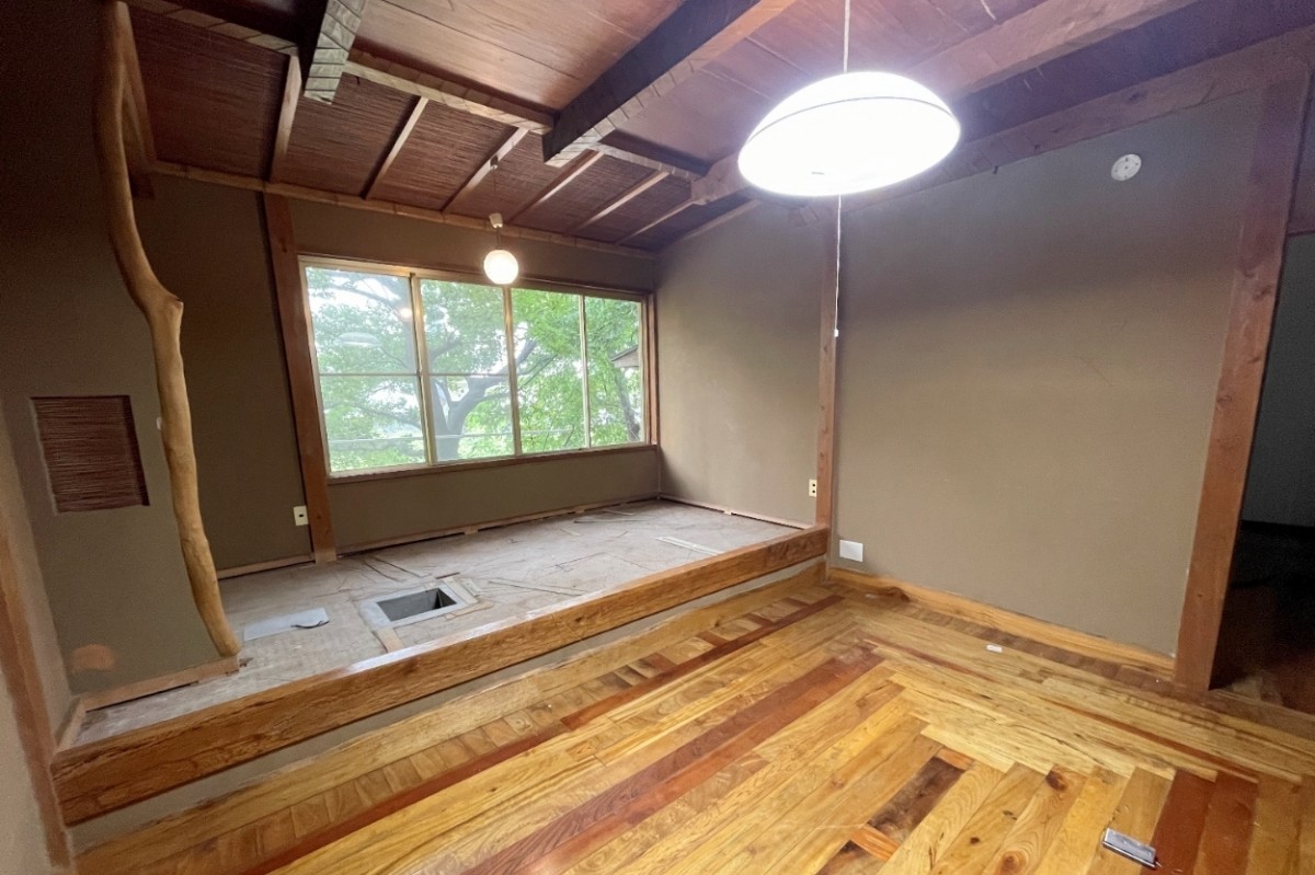 床をさげ、天井をあげて空間を最大限に活かすリノベーションを施しました。