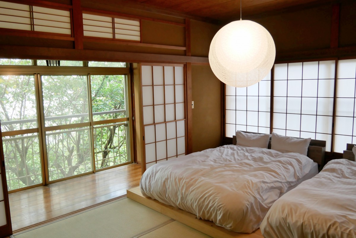 和の趣を残した寝室。