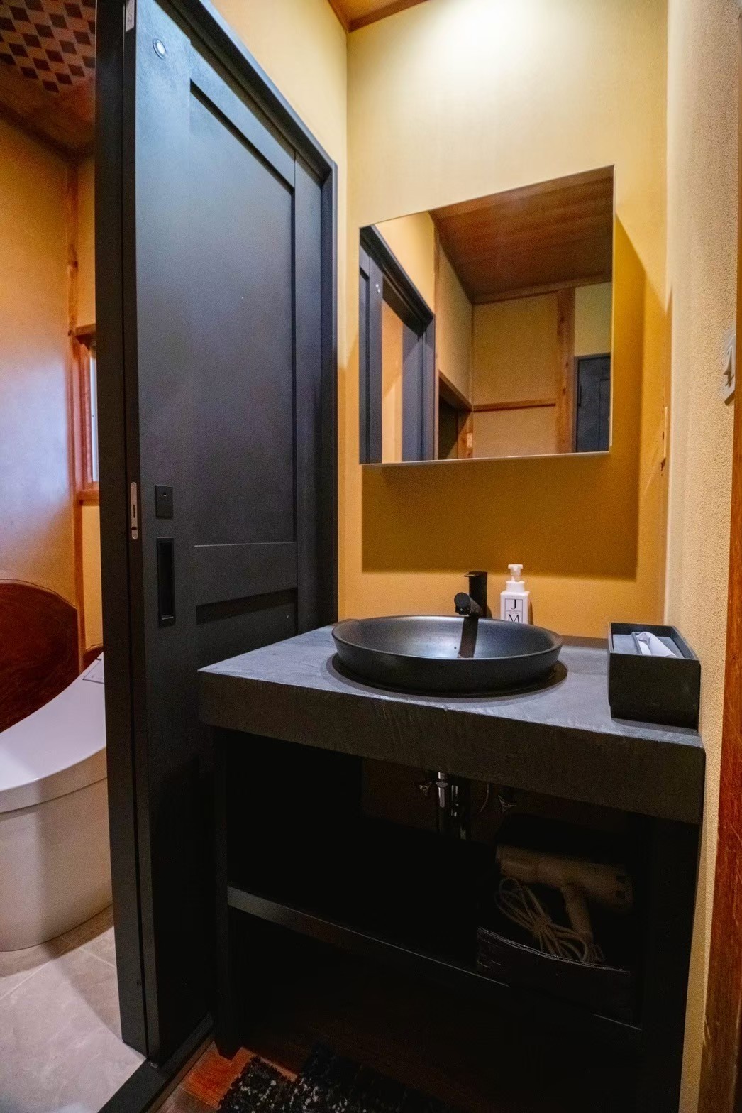 建具は統一し素材感のあるマットブラックの扉を採用。